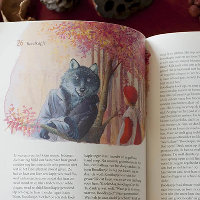 In dit prachtige, dikke sprookjesboek spelen zich avonturen af waarin hordes kabouters, kwaadaardige wolven, toverfeeën en boze stiefmoeders figureren. Maar bijna altijd weet het goede (hoewel soms op het nippertje) het kwade te overwinnen, en kan het kind gerust gaan slapen.