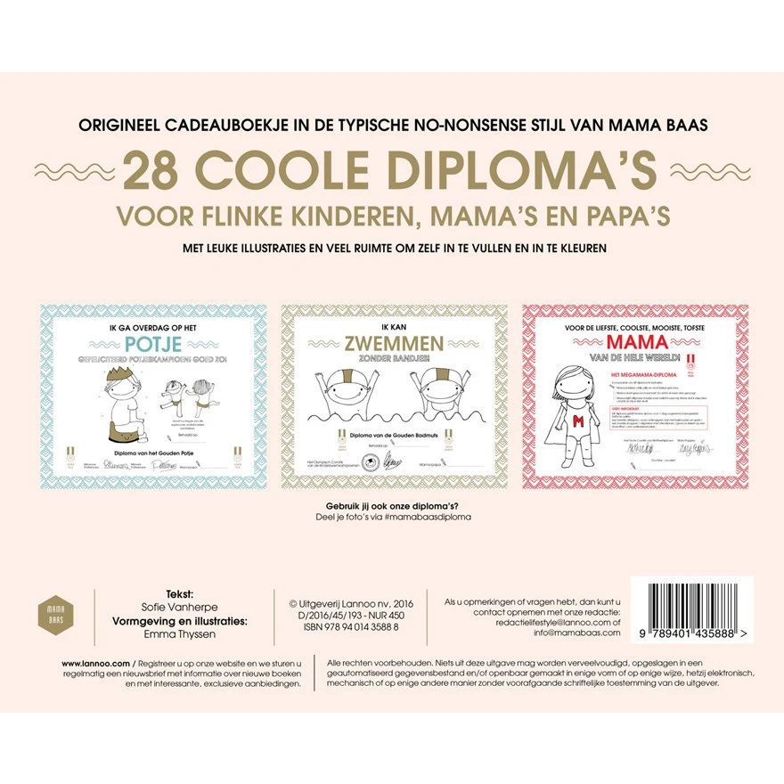 Origineel cadeauboekje in de typische no-nonsensestijl van Mama Baas. 28 coole diploma’s met leuke illustraties en veel ruimte om zelf in te vullen en in te kleuren.