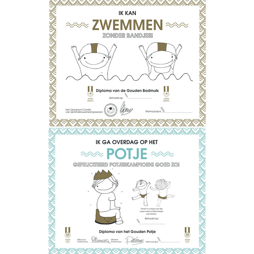 In dit boek staan maar liefst 28 diploma’s voor o.a. zelf tanden poetsen, fietsen zonder zijwieltjes, op het potje, zelf de jas aan doen, voor het eerst naar de kapper en nog meer leuke dingen waarvoor kinderen een diploma kunnen krijgen.