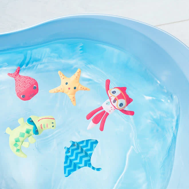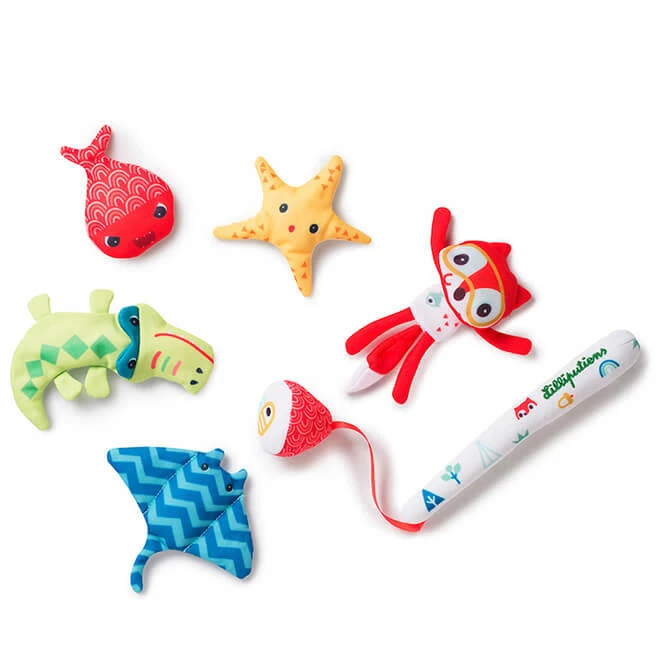 Dit Lilliputiens vissenspel is gemaakt van 100% polyester. Kan gewassen worden in de wasmachine op 30°C met de fijne was.