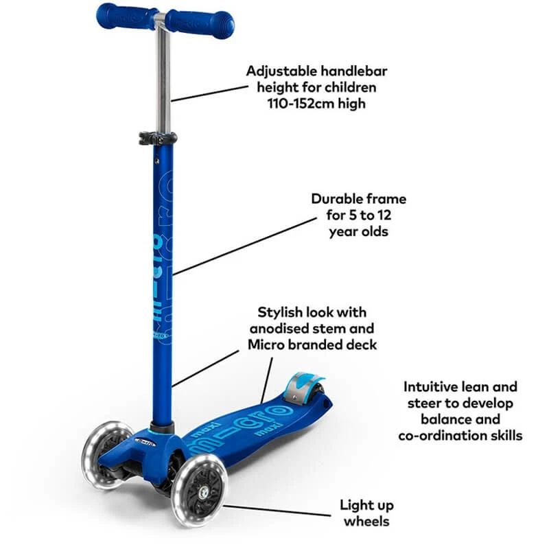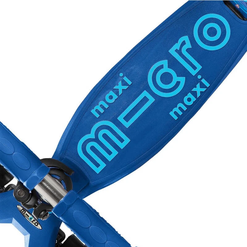 De micro step maxi blauw is een Zwitsers design en is veilig en stabiel door de dubbele voorwielen, laag glasvezelbord en stalen rem. Op het dek zitten siliconen letters wat zorgt voor extra grip. Let op, de step is niet geschikt voor stunts.