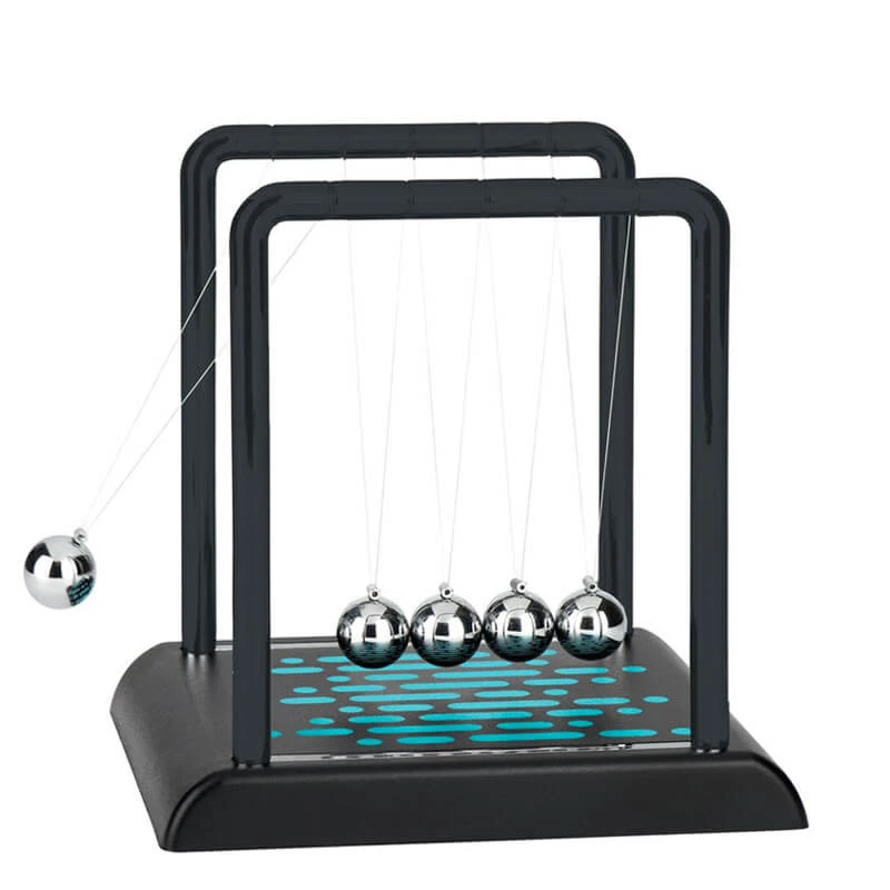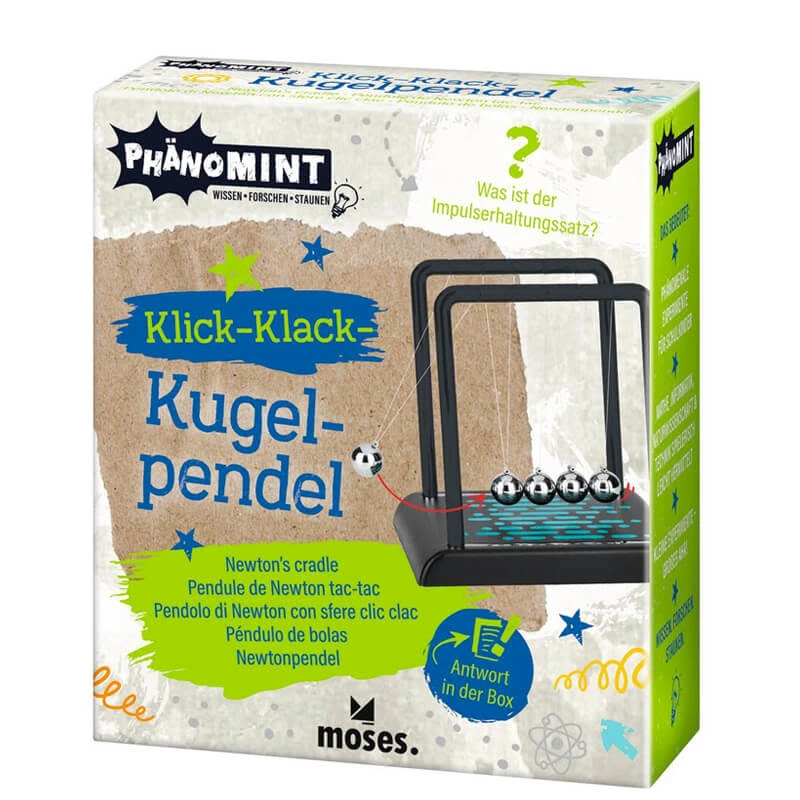 Met een zachte klik-klak zwaaien de metalen balletjes heen en weer en zorgen voor een fascinerend schouwspel. Welke mysterieuze kracht zorgt ervoor dat de bol aan beide uiteinden beweegt? Interessante informatie over het wetenschappelijke fenomeen “wet van behoud van momentum” in de verpakking geeft het antwoord. Uniek cadeau voor nieuwsgierige kinderen!
