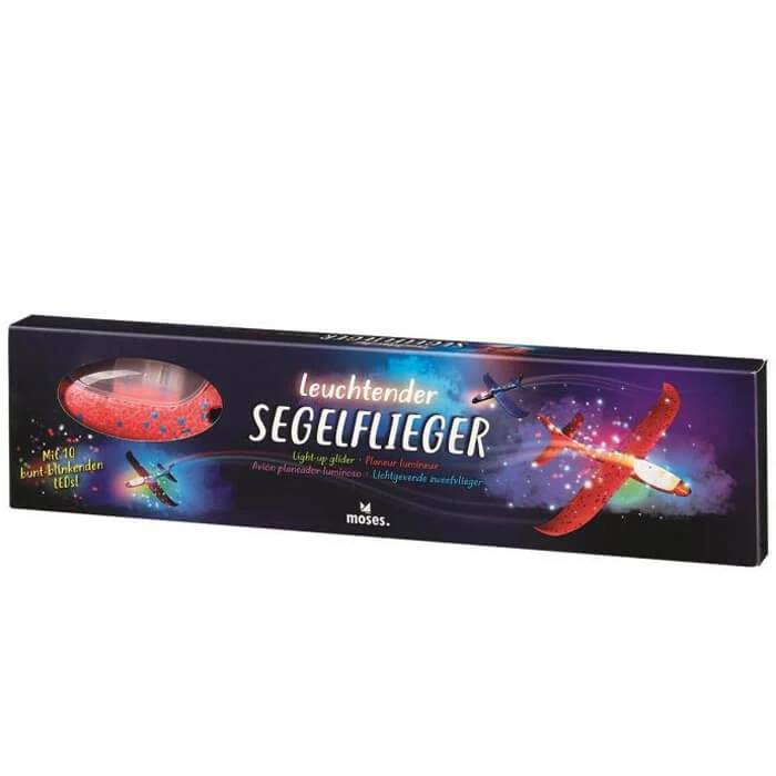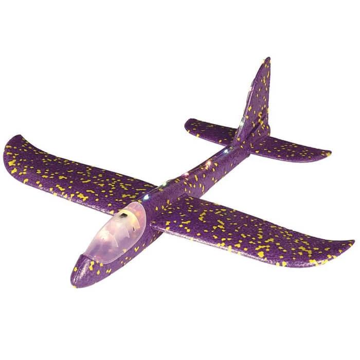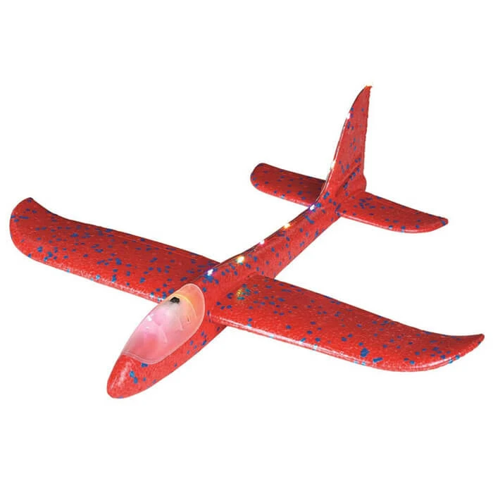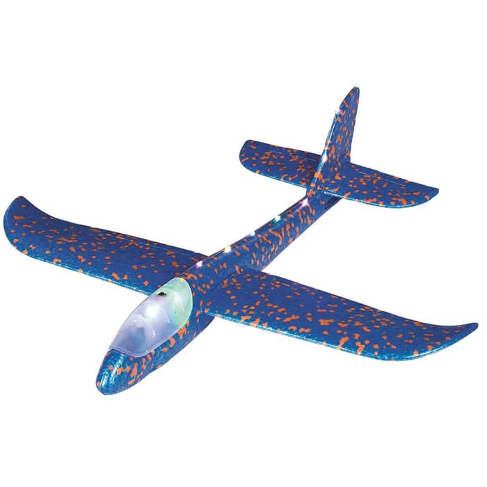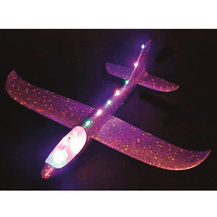 Dankzij de eenvoudige kit is het vliegtuig in een paar eenvoudige stappen in elkaar te zetten. Zweefvliegtuigen kunnen zonder motor vliegen door hun lichte gewicht. Dankzij de tien kleurrijke, knipperende LED’s is het vliegtuig ’s avonds extra cool. De verlichting kan op elk moment met een schakelaar worden in-, uitgeschakeld of in de knipperende modus worden gezet.
