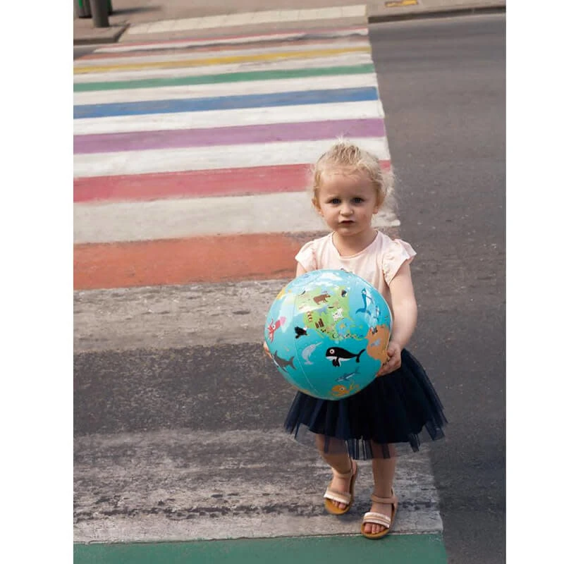 Een dagje strand wordt nog leuker met deze kleurrijke opblaasbare bal van het merk Scratch. Blaas de bal op tot een unieke wereldbol, met de typische dieren van elk continent en elke oceaan. Urenlang speelplezier gegarandeerd, in je tuin, op het strand en in het water!
