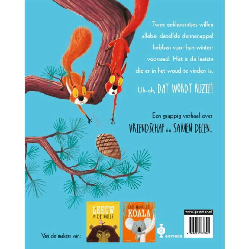 ‘Twee vechtende eekhoorntjes’ is een grappig prentenboek met een wijze les: waarom ruziemaken als je ook samen kunt delen? Delen kun je leren De eekhoorntjes Eduard en Reinier zijn druk bezig hun wintervoorraad aan te leggen en hebben allebei hun oog laten vallen op de állerlaatste dennenappel in het bos. In het spannende gevecht dat volgt gaan de eekhoorntjes zelfs zo ver dat ze hun eigen leven in gevaar brengen om de dennenappel te bemachtigen. Dat kan nooit goed gaan…